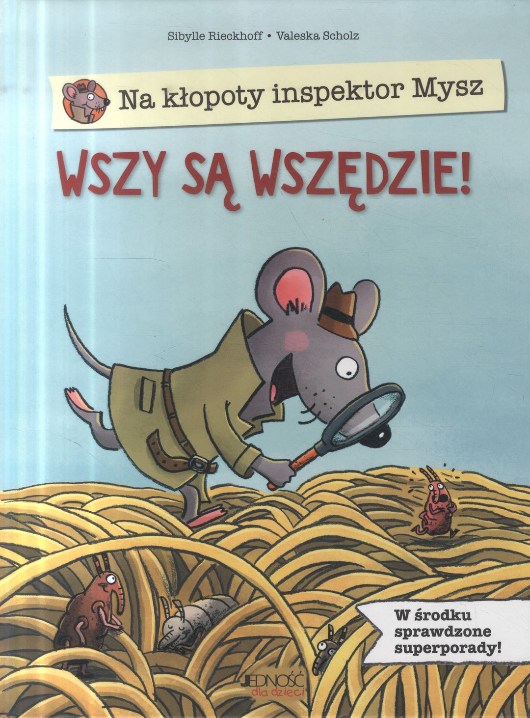 Inspektor Mysz to superbohater, który spieszy na pomoc wszystkim dzieciom! W tym tomiku zmierzy się ze wstrętnymi wszami, które potrafią rozpanoszyć się na głowie każdej dziewczynki i każdego chłopca i zrobić w ich włosach mało przyjemną imprezkę. Dla inspektora Myszy to jednak nie problem! W mig poradzi sobie z zuchwałymi insektami i skóra na głowie dzieci przestanie wreszcie swędzieć! [okładka]