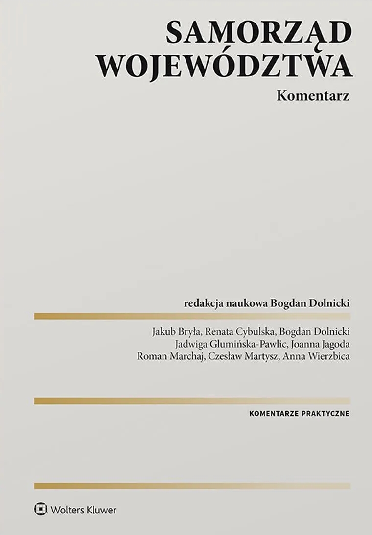Samorząd województwa : komentarz / Jakub Bryła, Renata Cybulska, Bogdan Dolnicki, Jadwiga Glumińska-Pawlic, Joanna Jagoda, Roman Marchaj, Czesław Martysz, Anna Wierzbica. - Stan prawny na 25 lipca 2023 r. z uwzględnieniem zmian wynikających z ustawy z 7 lipca 2023 r. - Warszawa : Wolters Kluwer, 2023. - 715, [1] strona ; 25 cm.