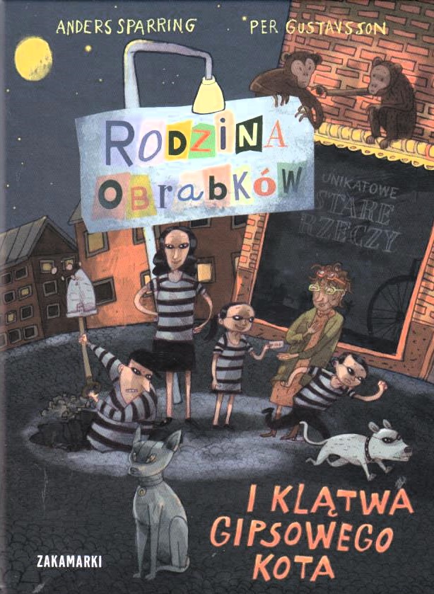 "Członkowie rodziny Obrabków bardzo lubią zabierać cudze rzeczy. Po prostu nie potrafią się powstrzymać. W każdym razie tata Zbiro, mama Cela i Elka. Za to Ture lubi robić tylko to, co dozwolone, i nie bierze niczego bez płacenia. Rodzice i siostra trochę się o niego martwią. Co z tego chłopaka wyrośnie? Ture i Elka, zupełnie niechcący, rozbijają gipsową figurkę kota w sklepie ze starociami. Zaraz potem zaczynają się dziać bardzo dziwne rzeczy. Mama Cela jest przerażona. Czyżby na rodzinę Obrabków spadła ta sama klątwa, która przed laty dotknęła ich przodka Kradzisława? Jeśli tak, to ich złodziejska przyszłość stoi pod znakiem zapytania! Czy uda im się odwrócić klątwę gipsowego kota?
