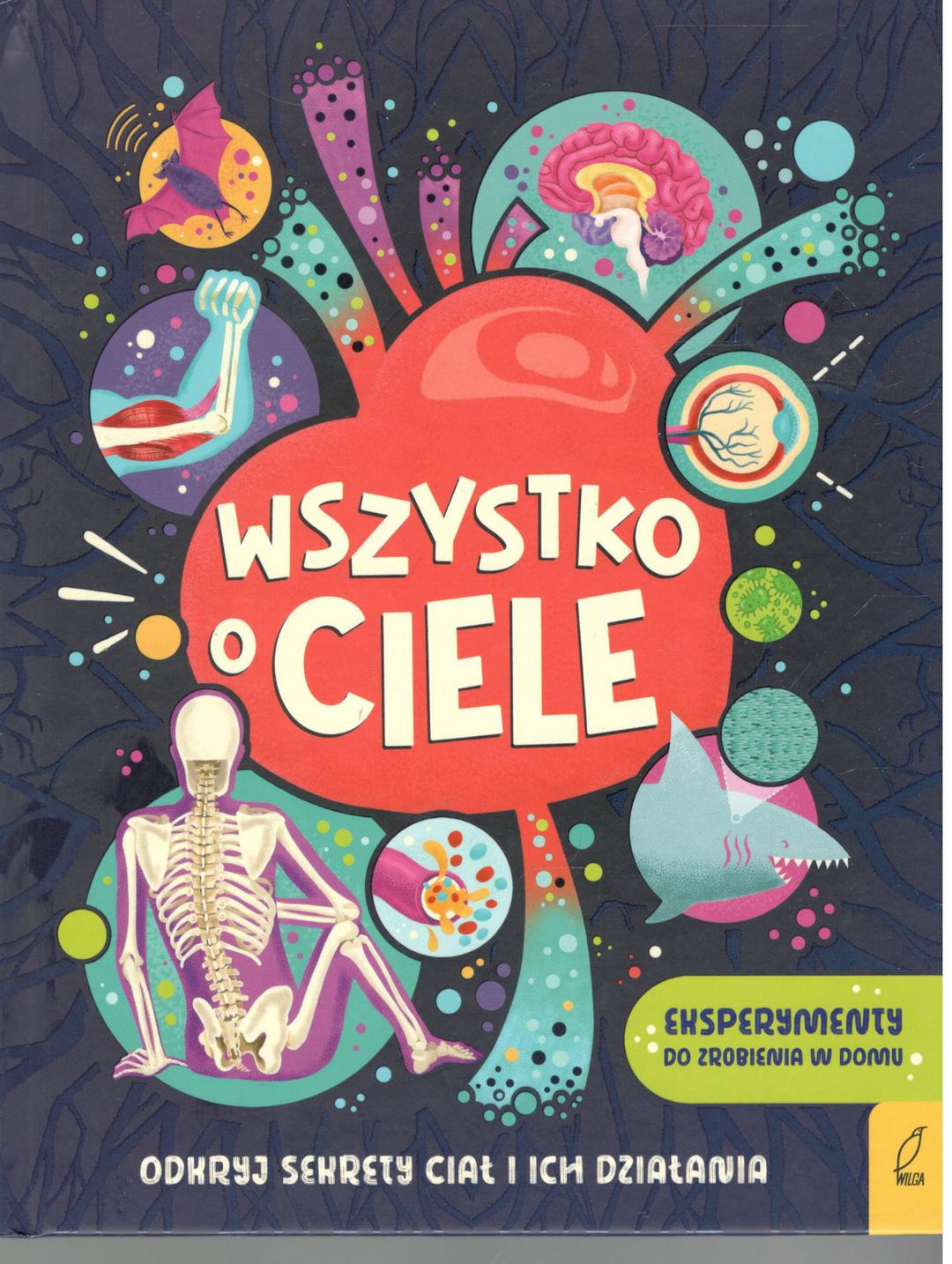 Poznaj swoje ciało! Odkryj co dzieje się w twoim żołądku, zajrzyj w głąb oka, wejdź pod warstwy skóry, i dotrzyj aż do składników krwi! Sześć rozdziałów prezentuje najważniejsze systemy naszego ciała w przejrzysty i zrozumiały sposób. Każda strona jest pełna ilustracji i schematów, które ułatwiają zrozumienie działania ciała. Każdy rozdział zawiera również proste i zabawne eksperymenty, które można wykonać samodzielnie w domu, takie jak zmysłu smaku czy budowanie modelu płuc. Dodatkowo, na każdej rozkładówce znajdują się ciekawostki z fascynującego świata zwierząt. Ostatni rozdział książki poświęcony jest niesamowitym zwierzęcym ciałom. Od niezwykłego węchu słonia po superwzrok bielika - czytelnicy odkryją fascynujące różnice i podobieństwa między ludzkim ciałem a organizmami ze świata zwierząt. Dzięki tej książce dostaniesz nie tylko dużą dawkę a wiedzy, ale także będziesz się świetnie bawił! [opis wydawcy].
