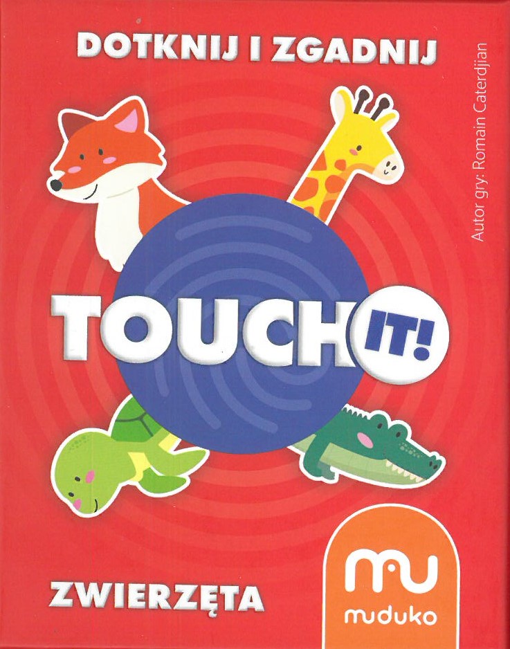 Touch it! : zwierzęta/ autor gry Caterdjian Romain, ilustracje Hibner Roksana, tłumaczenie Lingua Lab. - Podłęże : Muduko, copyright 2023. - 1 gra (56 kart) : karton, tektura, kolor ; w pudełku 10x12x4 cm + instrukcja.